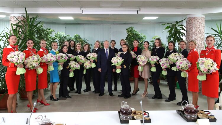 Известно, что Путин 5 марта встретился с сотрудницами российских авиакомпаний - рассказал о ситуации внутри страны и поздравил девушек с наступающим 8 марта. Бортпроводницы и женщины-пилоты плечом к плечу сидели вместе с руководителем страны за длинным столом, хотя ранее Владимир Путин на встрече с президентом Франции Эммануэлем Макроном держался на расстоянии в 30 метров.