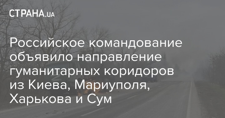 Российское командование объявило направление гуманитарных коридоров для выхода мирного населения во время объявленного Миноброны РФ режима тишины с 09:00 утра по киевскому времени.