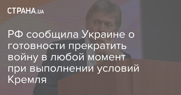 Пресс-секретарь Владимира Путина Дмитрий Песков заявил, что Москва сообщила Киеву о том, что может прекратить войну "в любой момент", если Украина выполнит условия России.