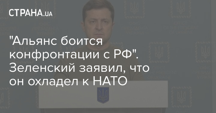 "Касательно НАТО, я охладел к этому вопросу после того, как мы поняли, что НАТО не готова принять Украину. Альянс боится противоречивых вещей и конфронтации с РФ", - заявил Зеленский в интервью американскому телеканалу ABC News.