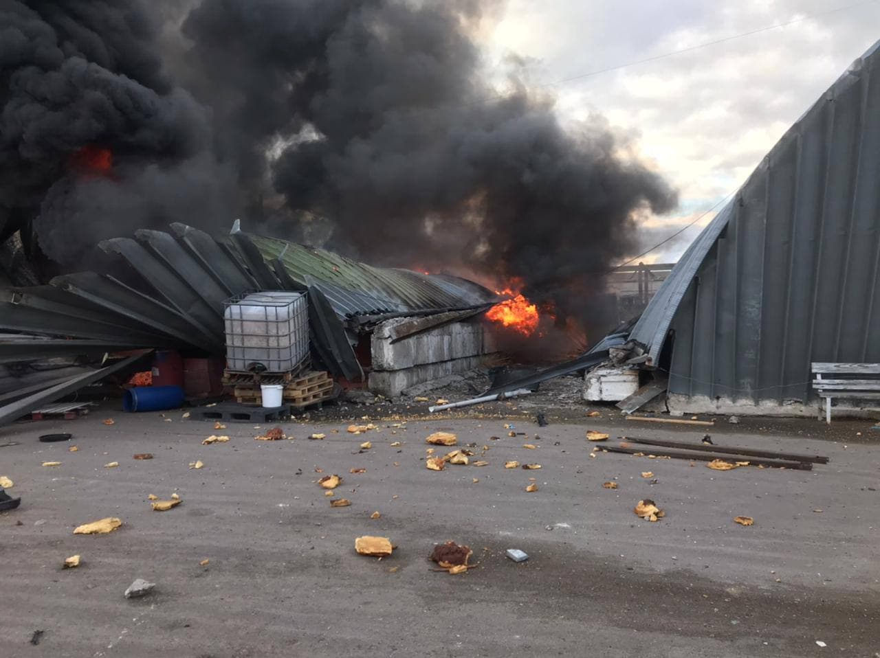 По данным ГСЧС, произошло разрушение двух складских зданий с последующим возгоранием на площади 2 тысяч квадратов.