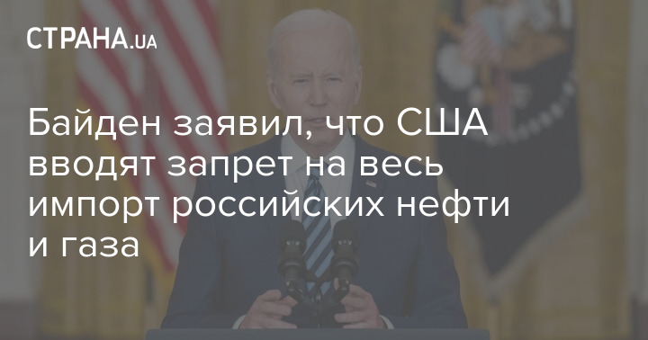 "Я оглашаю новый пакет санкций. Мы запрещаем весь импорт нефти. Это означает, что нефть РФ не будет импортироваться. Эта мера – под мощной двухпартийной поддержкой", - говорит президент США.