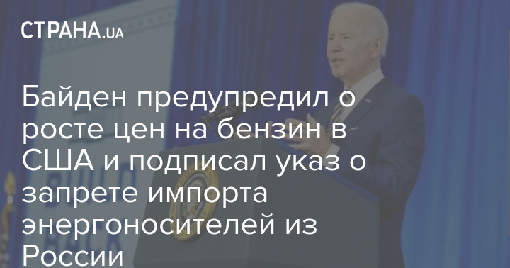 Президент США Джо Байден, который объявил о запрете на импорт российских нефти и газа, сообщил, что страна запрещает импорт энергоносителей из России и предупредил о том, что цены на бензин будут расти из-за санкций в отношении РФ.