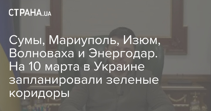 Завтра, 10 марта, в Украине запланирована организация еще шести "зеленых коридоров". Об этом рассказал президент Украины Владимир Зеленский в своем видеообращении.