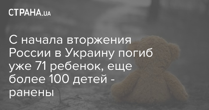 С начала вторжения России в Украину погиб уже 71 ребенок, еще более 100 детей - ранены