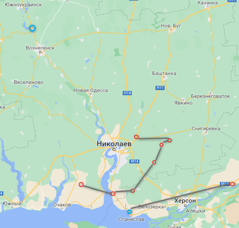 На карте это выглядит так (обе Александровки помечены синим). Идет явная попытка окружить Николаев с юга и востока с обходом с западной стороны.