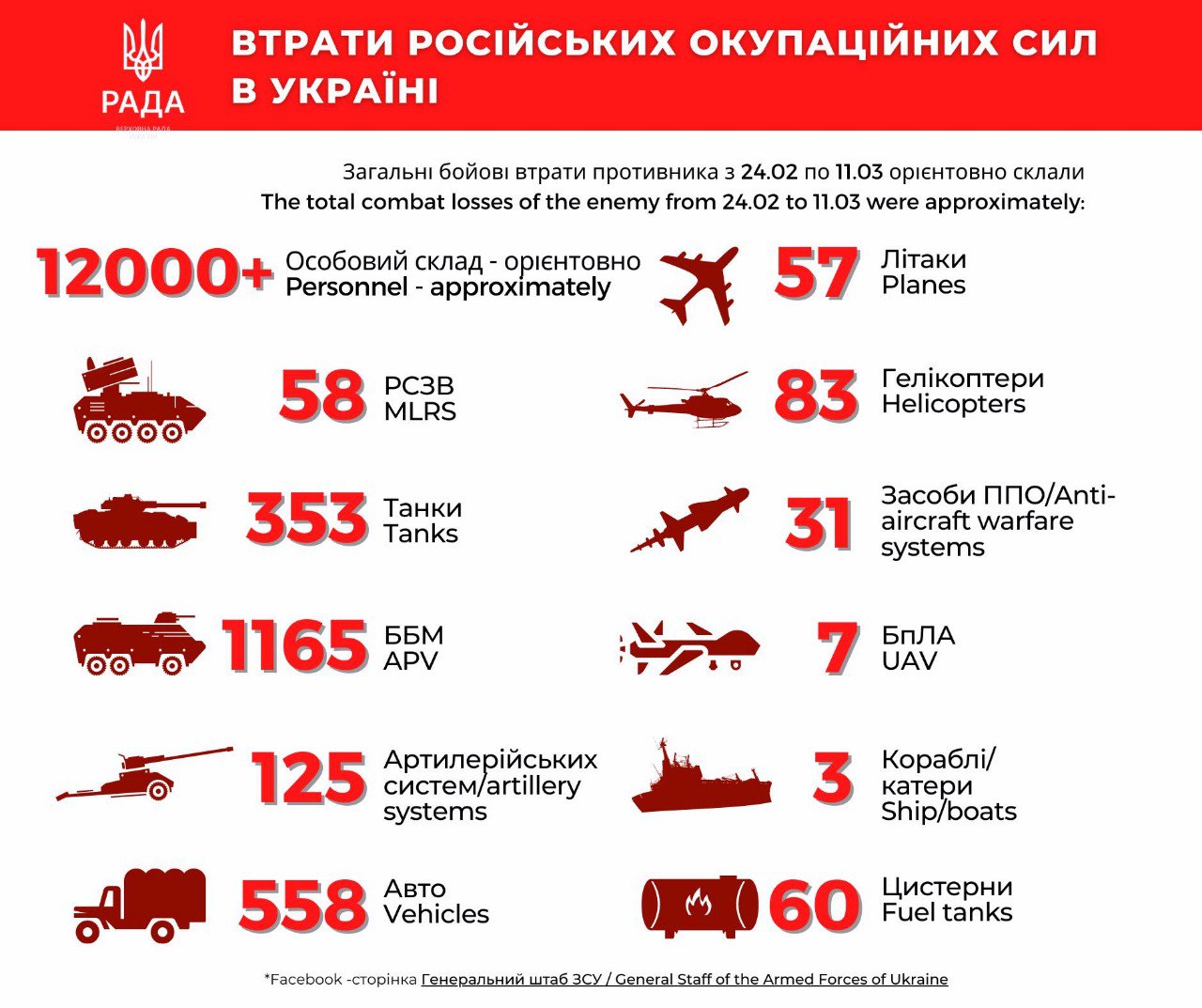 12.38 Потери войск РФ в Украине по данным Генштаба ВСУ.