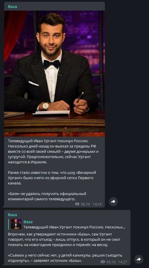 Позже Иван Ургант подтвердил свой отъезд из России и опубликовал фото в Инстаграм. Но написал, что уехал в отпуск и планирует вернуться.