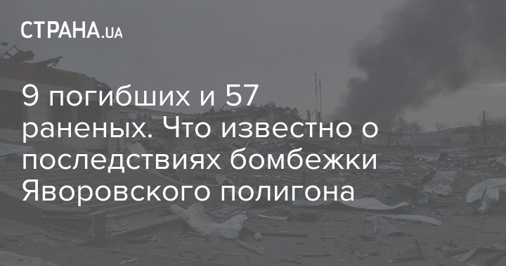 По данным губернатора, ракеты были выпущены с самолетов. В результате обстрела Яворовского военного полигона 9 человек погибли, 57 – ранены, они уже находятся в больнице. Сейчас ГСЧС тушат пожар на месте обстрела.