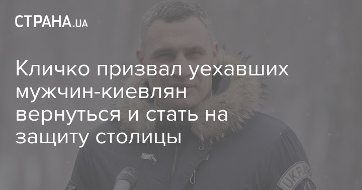 Кличко призвал уехавших мужчин-киевлян вернуться и стать на защиту столицы