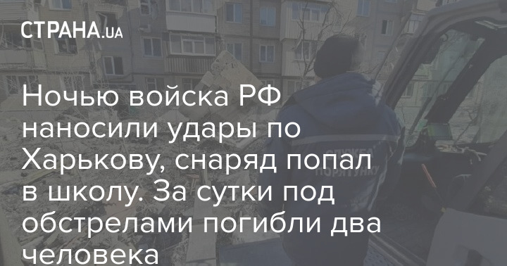В результате ночного обстрела Харькова российскими войсками снаряд попал в одну из школ. Разрушена трехэтажная часть здания на площади 800 квадратных метров. Пострадал один человек.