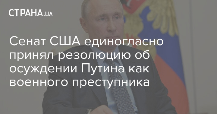 Сенат США во вторник, 16 марта, единогласно принял резолюцию, осуждающую президента России Владимира Путина как военного преступника.