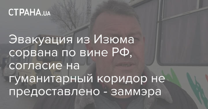 Усилия по созданию гуманитарного коридора и эвакуации населения из Изюма сорваны по вине российской стороны. Об этом заявил заммэра Владимир Мацокин.