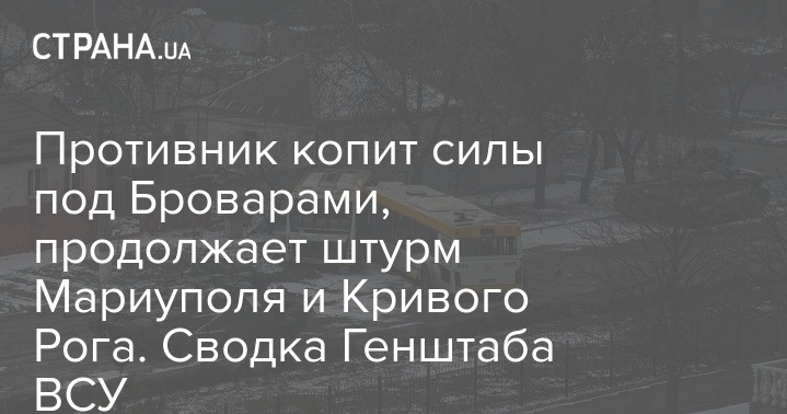 Противник копит силы под Броварами, продолжает штурм Мариуполя и Кривого Рога. Сводка Генштаба ВСУ
