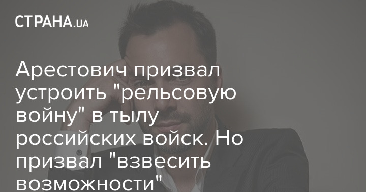 При этом советник главы ОП предупреждает, что российские войска охраняют железные дороги, а потому Арестович предлагает потенциальным партизанам взвесить свои силы и возможности перед тем как идти на дело.
