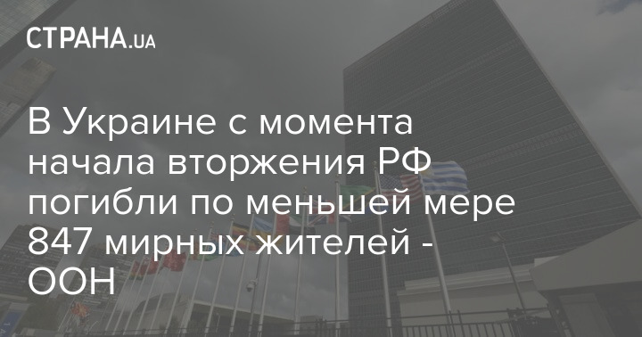 В Украине с момента начала вторжения РФ погибли по меньшей мере 847 мирных жителей - ООН