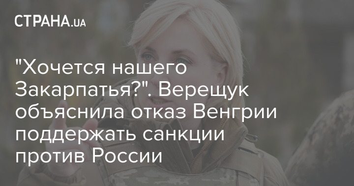 Вице-премьер Украины Ирина Верещук подвергла критике Венгрию за отказ поддержать санкции против России, а также высказала подозрения, что венгерские власти якобы желают присоединить Закарпатскую область Украины, которая в прошлом входила в состав Австро-Венгерской империи.