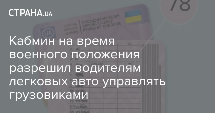 Кабинет министров Украины на время военного положения разрешил водителям легковых авто (категория B) водить грузовики (С, С1).