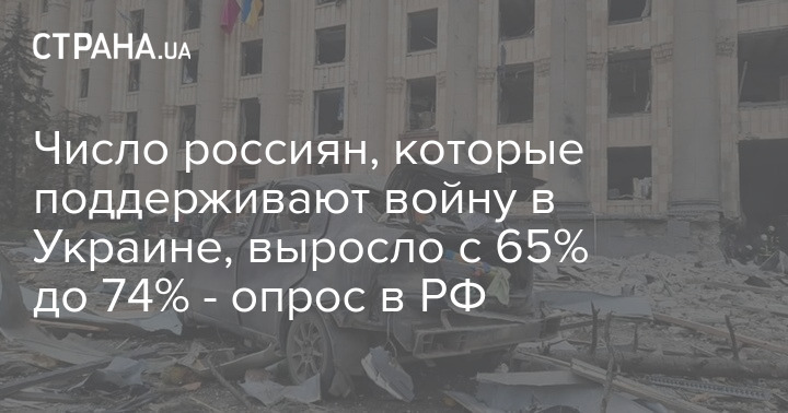 По данным российской социологической службы ВЦИОМ, по состоянию на 17 марта доля россиян, поддерживающих войну России против Украины (которая в РФ официально именуется "военной спецоперацией") за три недели выросла до 74% (с 65%), доля скорее не поддерживающих сократилась до 17% (с 25%).