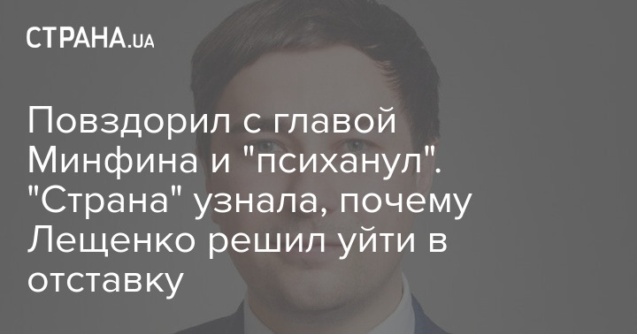 Повздорил с главой Минфина и "психанул". "Страна" узнала, почему Лещенко решил уйти в отставку