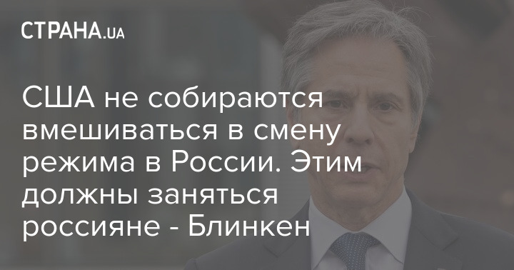 Государственный секретарь США Энтони Блинкен заявил, что Вашингтон не планирует влиять на смену режима в России, этим должны заняться сами россияне.