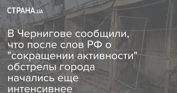 Секретарь Черниговского горсовета Александр Ломако в комментарии "Стране" сообщил, что после вчерашних заявлений России о "снижении активности" на Черниговском и Киевском направлении, обстрелы города начались ещё интенсивнее, чем раньше.