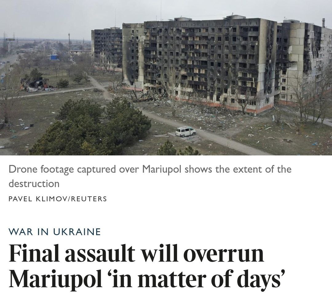 06.13 Британская The Times пишет, что Мариуполь находится на грани падения. И счёт идёт на дни.