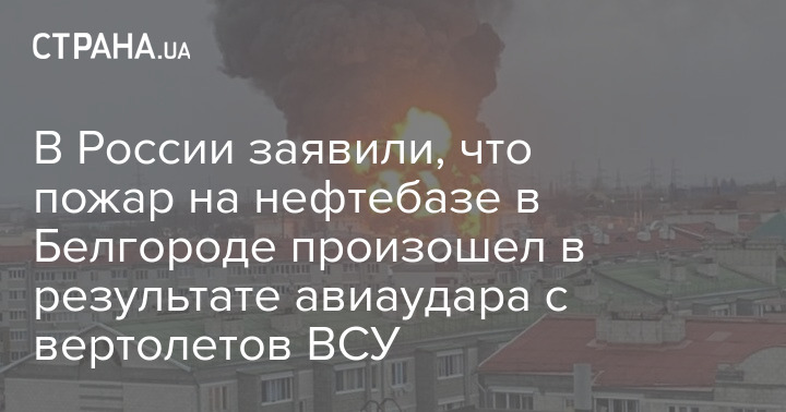 В России заявили, что пожар на нефтебазе в Белгороде произошел в результате авиаудара с вертолетов ВСУ