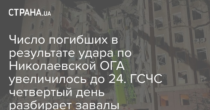 Число погибших в результате ракетного удара по зданию Николаевской облгосадминистрации увеличилось до 24 человек.