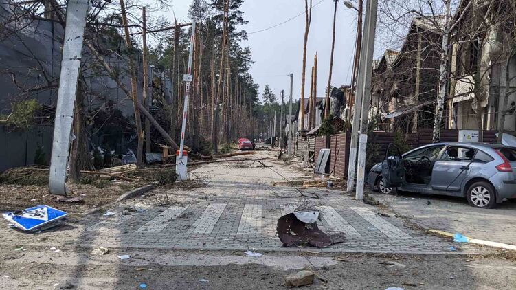 Разрушенная улица в Гостомеле. Фото: Twitter / @kkhacheridi