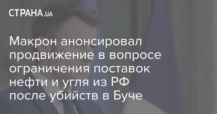 После убийств российской армией мирного населения в Буче Евросоюз может продвинуться в обсуждении вопроса об ограничении поставок нефти и угля из России. Такое заявление сделал президент Франции Эммануэль Макрон в эфире радиостанции France Inter.
