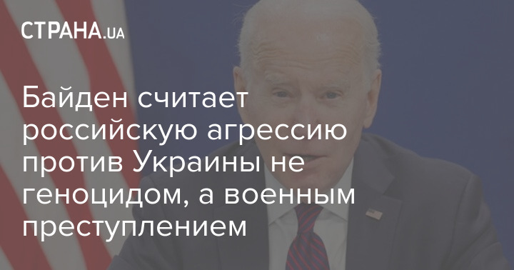 Президент Соединенных Штатов Джо Байден заявил, что считает российскую агрессию против Украины не геноцидом, а военным преступлением.