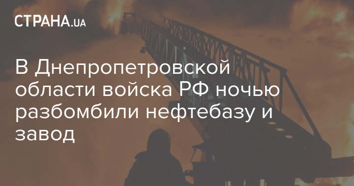 В ночь с 5 на 6 апреля войска РФ обстреляли Днепропетровскую область. Снаряды попали в нефтебазу и один из заводов.