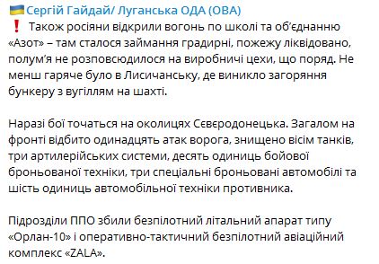 Также россияне пытаются штурмовать Нижнее, Новотошковское, Золотое и Боровское в Луганской области.