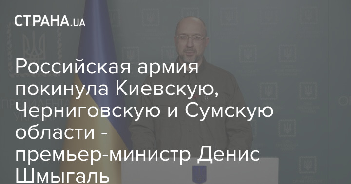 Премьер-министр Украины Денис Шмыгаль заявил, что российские войска покинули три области - Киевскую, Черниговскую и Сумскую.
