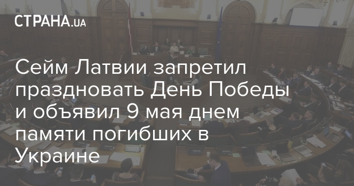 Парламент Латвии в срочном порядке, за один день, утвердил законопроект, предусматривающий, что 9 мая этого года будет Днем памяти пострадавших и погибших в Украине. В этот траурный день, совпадающий с Днем Победы, запрещено проводить массовые развлечения и праздничные мероприятия.
