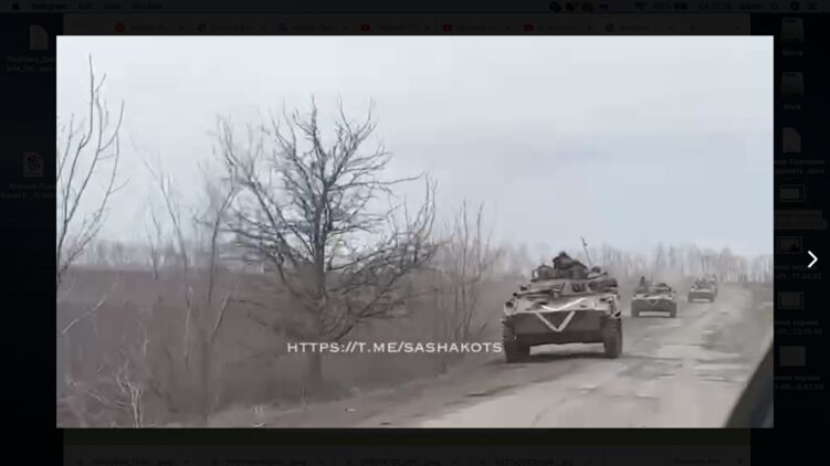 В сети появились видео российской техники с буквой V на дорогах в Харьковской области. Это подтверждает переброску Россией в регион войск из-под Киева.