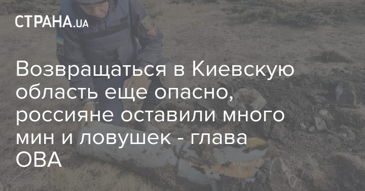 Глава Киевской ОВА Александр Павлюк вслед за мэром Киева призвал жителей региона не торопиться возвращаться домой, так как противник оставил много растяжек и ловушек.