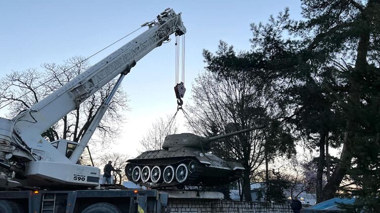 В Мукачево демонтировали памятник советскому танку Т-34. Фото