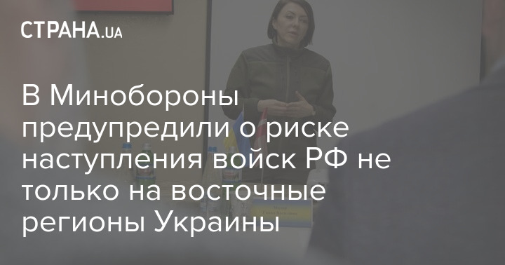 Заместитель министра обороны Украины Анна Маляр заявила, что угроза наступления противника не только на восточные, а и на другие регионы нашей страны существует, несмотря на то что главная задача войск РФ - это попытка закрепиться на границах Луганской и Донецкой областей.