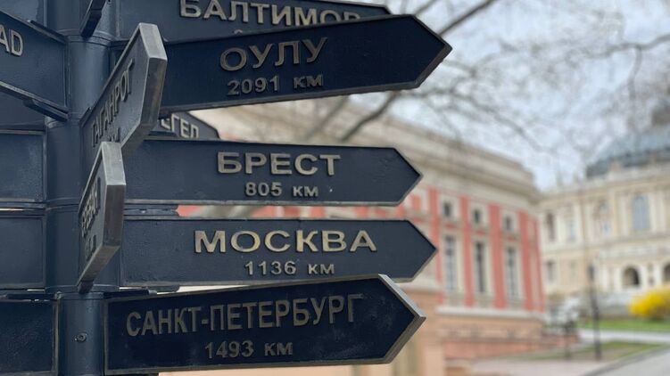 В Одессе с памятного знака городов-побратимов на Думской площади снимут указатели с названиями городов РФ