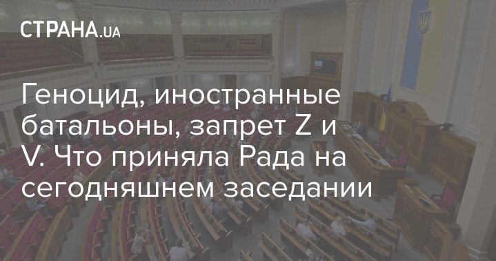 Верховная Рада на сегодняшнем заседании приняла ряд законопроектов и постановлений. В частности, о признании действий России в Украине геноцидом, разрешение иностранным батальонам входить в состав Минобороны, регистрации геномной информации человека.