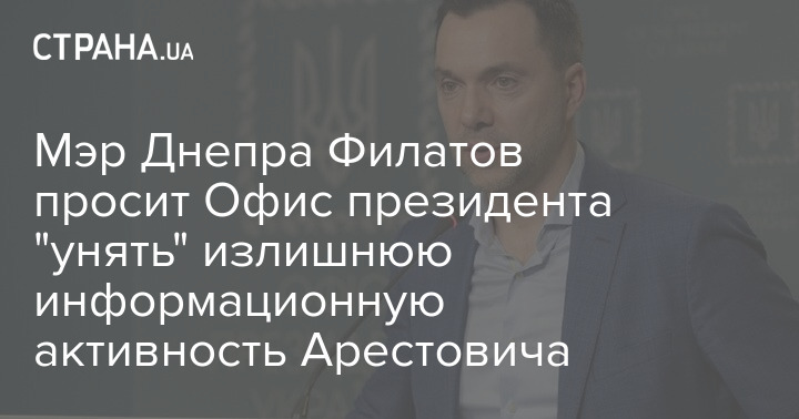 Мэр Днепра Борис Филатов заявил, что ему не нравится чрезмерная информационная активность советника главы Офиса президента Алексея Арестовича. По мнению градоначальника, высказывания последнего вредоносны.