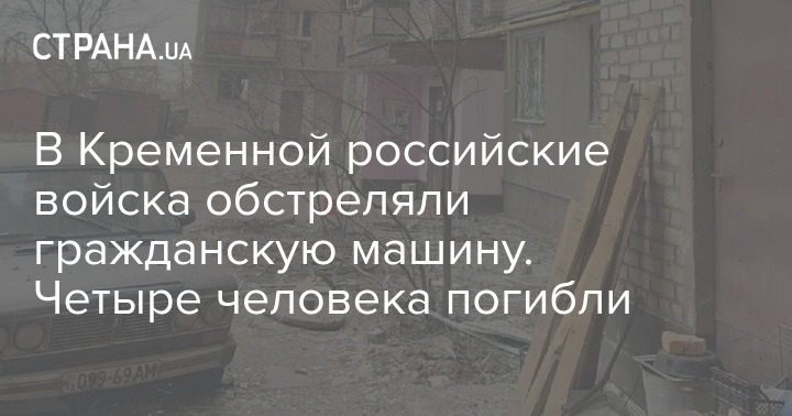 В Кременной Луганской области, которую сегодня взяли под контроль российские войска, обстреляли гражданскую машину. Предварительно четыре человека погибли, один ранен.
