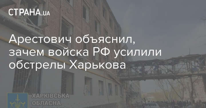 Советник главы Офиса президента Алексей Арестович заявляет, что войска РФ не видят Харьков целью своего наступления, а обстрелы по городу и его окрестностям противник усиленно ведет, чтобы предотвратить наступление ВСУ.