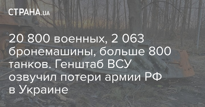 20 800 военных, 2 063 бронемашины, больше 800 танков. Генштаб ВСУ озвучил потери армии РФ в Украине