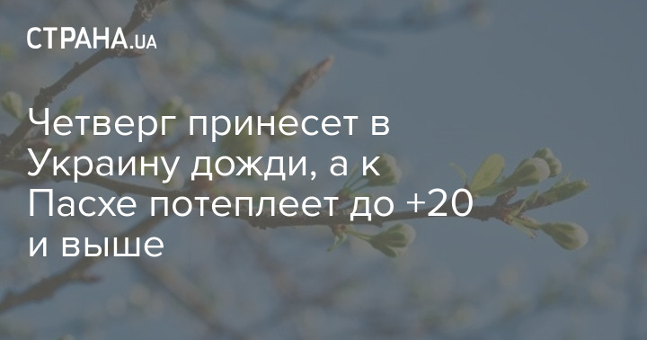 Четверг принесет в Украину дожди, а к Пасхе потеплеет до +20 и выше