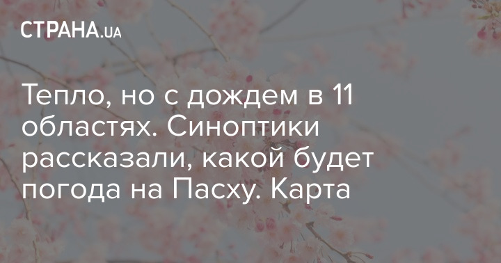 На Пасху, 24 апреля, в Украине погода порадует солнцем, а столбики термометров покажут довольно высокие  значения - до +15...+20 градусов.