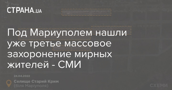 Как писала "Страна", 21 апреля в окрестностях Мариуполя было найдено первое массовое захоронение погибших гражданских лиц - в селе Мангуш в 15 километрах от осажденного российскими оккупантами города.