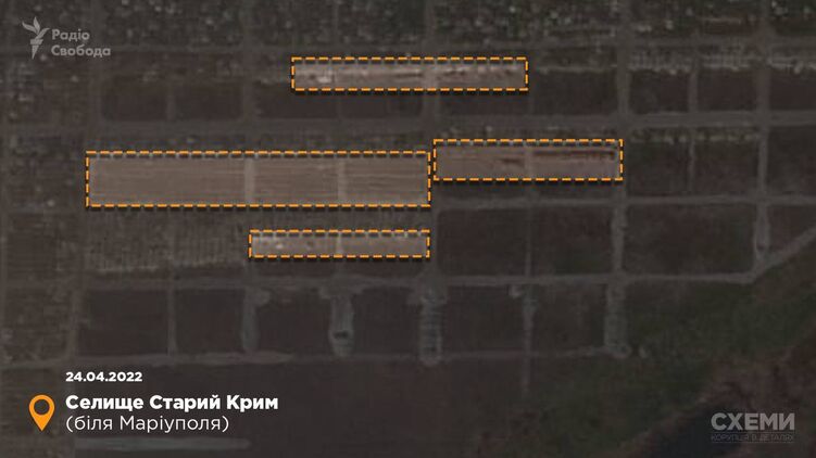 В поселке Старый Крым под Мариуполем обнаружено место массового захоронения жителей города - уже третье за последние дни. На спутниковых снимках видно, что длина траншей для тел составляет до 70 метров.